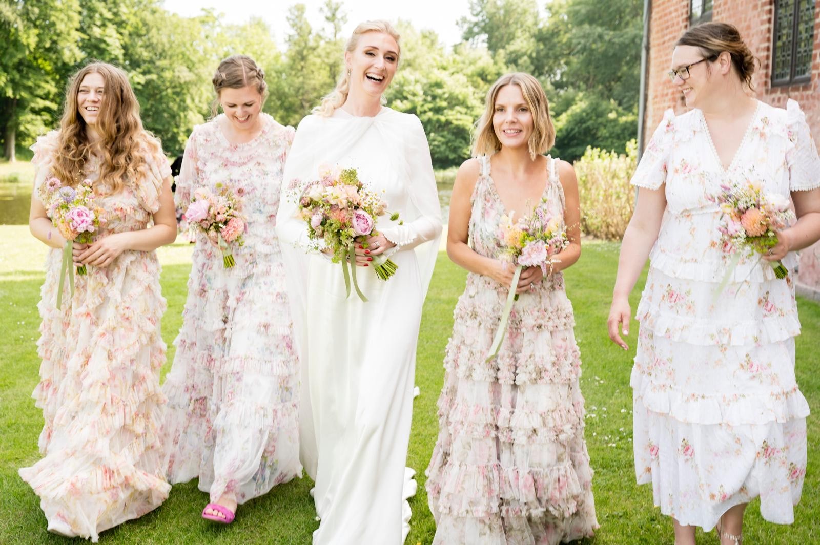 Ud over brudebuketten kreerer vi knaphulsblomster og hårpynt og binder brudepigebuketter.